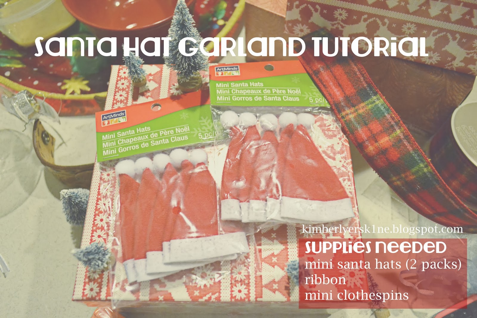 Then clip the santa hats onto the ribbon using mini clothespins and there you have it, a garland that is affordable, simple, and perfect for display!
